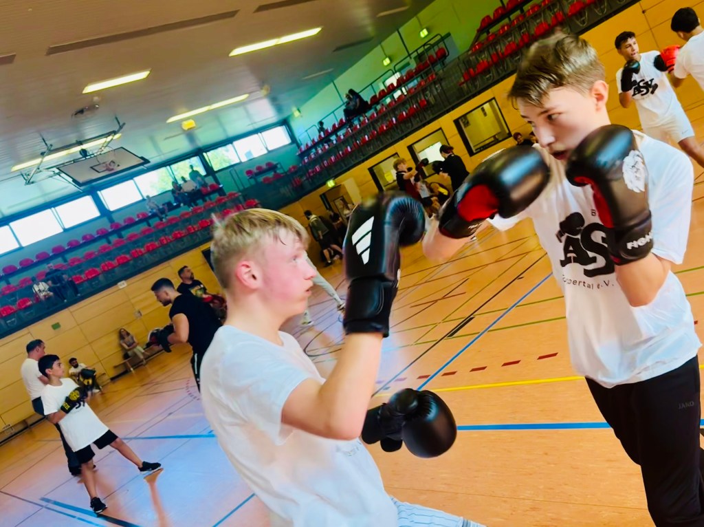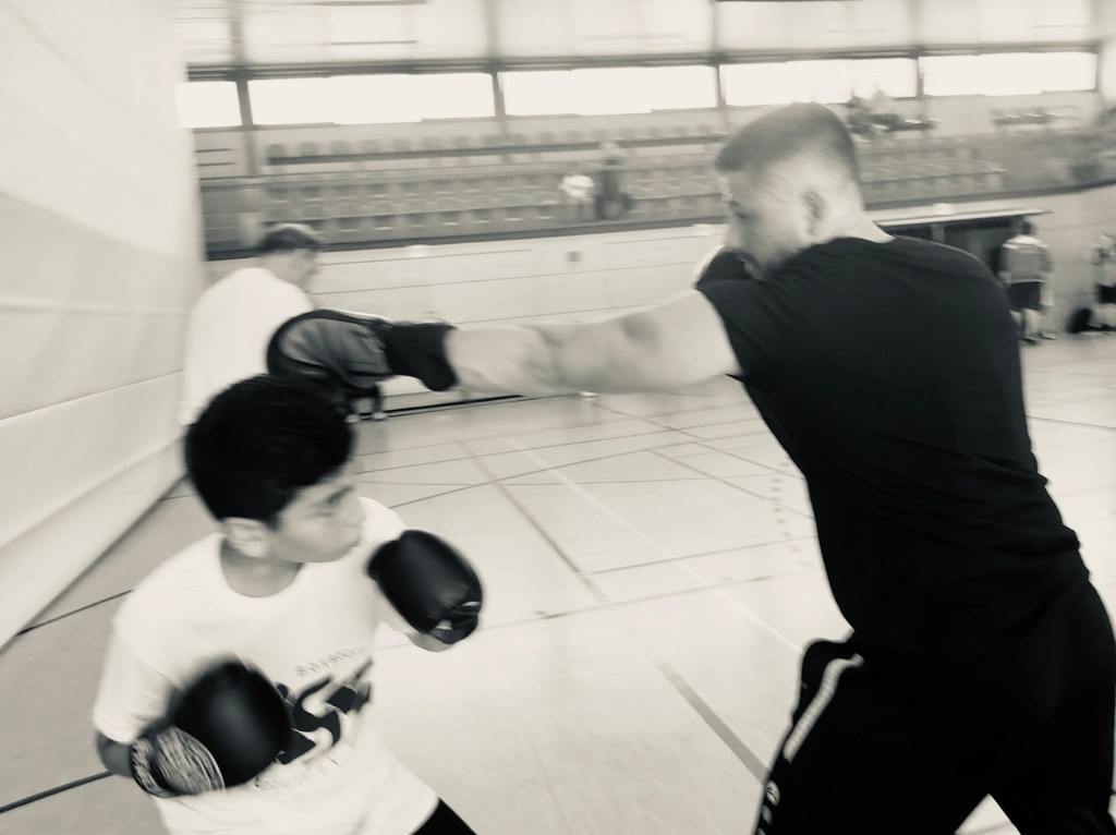 Unsere ASV-Boxtrainer Dominik Geenen und Salvatore Gualtieri zeigten zusammen mit unseren Sportlern Timurhan Dönmez, Paul Berchner, Julian Lange, Lukas Soumelidis, Rahmat Safari, André Kern und Josef Ludwig wie ein Training aufgebaut ist, und ließen auch interessierte Anfänger ein paar Schläge machen.